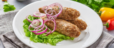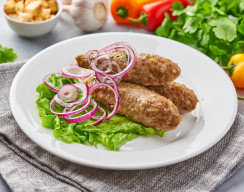 Состав: говядина, молоко 3,2%, соль, перец, масло подсолнечное, лук репчатый, мука пшеничная, масло подсолнечное, фарш куриный, яйцо куриное.
