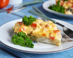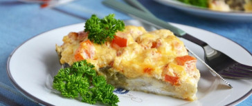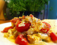 Состав: омлетная смесь ( яйцо куриное, молоко 3,2%, крахмал, соль, масло подсолнечное, перец черный молотый), помидор.