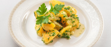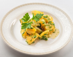 Состав: картофель мини, масло подсолнечное, соль, перец черный молотый, зелень.