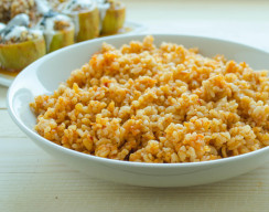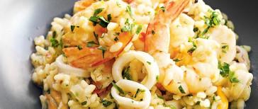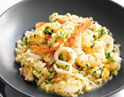 Состав: рис арборио, креветки, кабачки, лук, сливки 22%, сыр пармезан, масло оливковое, соль, перец черный молотый.