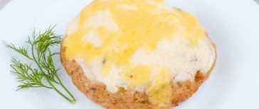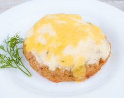 СОстав : куриное филе, грибы шампиньоны,сыр Гауда,соль, хлеб белый, мука пшеничная,перец черный молотый, масло подсолнечное.