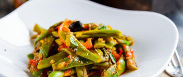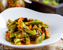 Состав: фасоль стручковая, перец болгарский, кунжут, зелень, масло подсолнечное, соль.