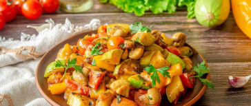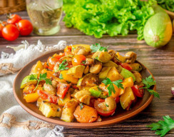 Состав: капуста б/к,картофель,брокколи,помидоры свежие,морковь,лук репч.,перец болг.,чеснок,масло раст.,специи.