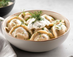 Состав: Свинина, шампиньоны, сметана, мука пшенинчная, сыр моцарелла.