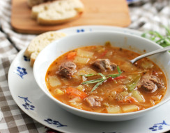 Состав: Капуста белокачанная, говядина, картофель,помидоры, морковь, лук репч. , чеснок, масло раст., специи, зелень.