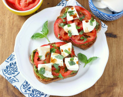 Состав: хлеб тостовый, сыр моцарелла, яйцо, зелень, масло подсолнечное, сухари панировочные, соль, помидор, мука пшеничная, соус песто (базилик, масло подсолнечное, зелень, кедровые орехи, чеснок).