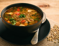 Состав: чечевица, картофель, паприка, соль, перец, помидоры, морковь, лук репчатый, зелень.