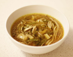 Состав: лук репчатый, морковь, лапша, соль, перец, лавровый лист, зелень, грибы шампиньоны.